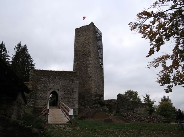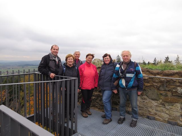 Autobus nás převezl do okrajové části Humpolce zvané Rozkoš, odkud jsme podle stanoveného programu vystoupali na hrad Orlík, respektive na nedávno vybudovanou rozhlednu, jejíž vyhlídková plošina je umístěna na čtverhranné věži starobylé a malebné hradní zříceniny, jejíž historie započala ve 14. století. (Více o hradním areálu ve článku Cestami Oktaviána Strádala 2014.)