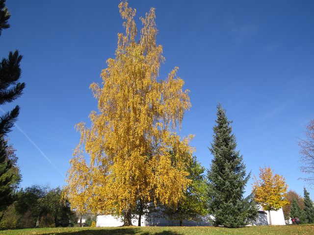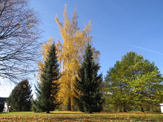 V parčíku u Dolního hřbitova jsme se zastavili nejen proto, abychom přes mříže vstupní brány pohlédli na Anděla Posledního soudu, zaujaly nás i barvy, kterými se přioděly zdejší stromy.