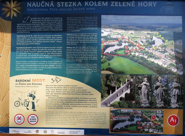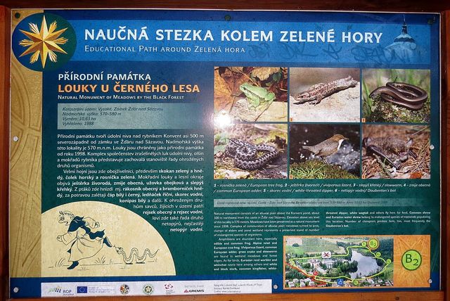 Naučná stezka kolem Zelené hory má dva vycházkové okruhy – velmi volně se dá říci, že jeden vede kolem Konventského rybníka a druhý kolem Bránského – část cesty je pro oba okruhy společná. Na stezce, která obchází Konventský rybník, poznají návštěvníci místa s nejvyšší ochranou přírody a krajiny – mokřady a rašelinné louky v povodí Stržského potoka pod Zelenou horou, na níž je poutní kostel sv. Jana Nepomuckého – vzácně se tu snoubí bohatství přírody se skvělým výtvorem lidským.