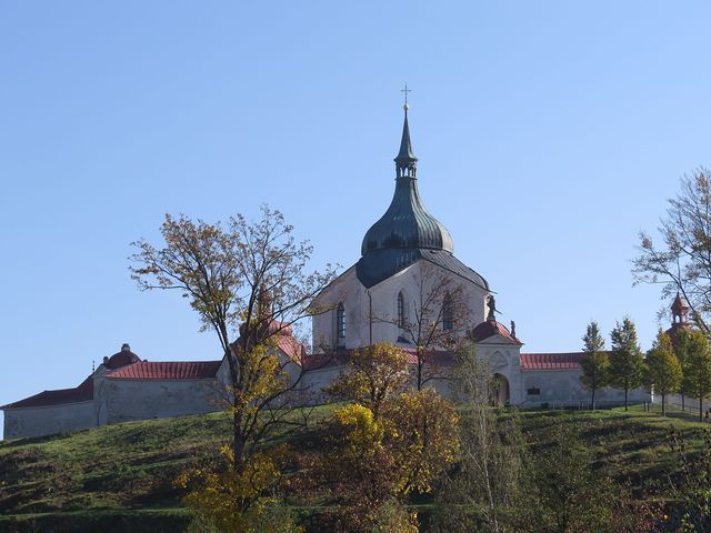 Zamířili jsme do starého města a rozhlíželi se se stejným zaujetím jakoby to bylo poprvé – kostel sv. Jana Nepomuckého na Zelené hoře je opravdu krásný a pokaždé jiný, magicky přitažlivý – záleží ze kterého místa se na něj díváte, jaké je světlo a asi také na tom, v jakém je člověk rozpoložení – dneska se zřejmě všechny prvky vzájemně prolínaly a umocňovaly, protože výsledný dojem byl okouzlující.