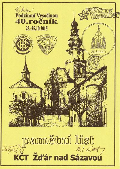 KČT Žďár nad Sázavou pořádal ve dnech 23. – 25. 10. 2015 40. ročník turistického pochodu
