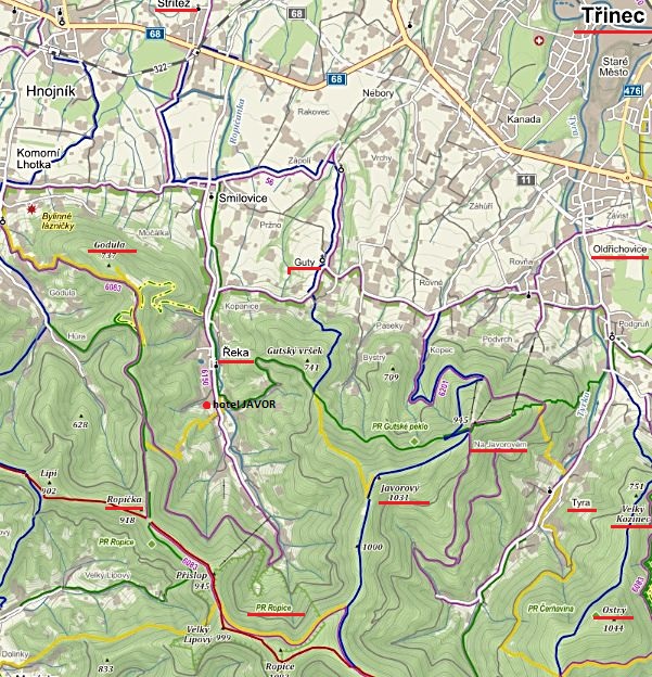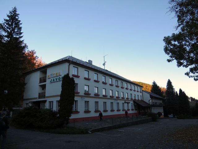 Podzimní výpravy s Milanem Markem se zúčastnili skoro všichni, kteří absolvovali zájezd v létě 2014, pořádaný tímto zdatným tvůrcem programu a osvědčeným průvodcem do Vysokých Tater, Pienin a Slovenského ráje – pouze mimořádná událost by nás donutila nechat si takovou příležitost ujít. Naštěstí nenastala, takže jsme v úterý 27. října večer kolem sedmé nasedli do autobusu, kde si už lebedili českokrumlovští a budějovičtí turisté – mířili jsme na severovýchodní Moravu do Moravskoslezských Beskyd, kde jsme se pozdě večer ubytovali v obci Řeka, rozložené v malebném údolí říčky Řeky. 🙂 Rekreační středisko Třineckých železáren se nejmenuje Řeka, protože hotel stejného jména v této obci už od třicátých let minulého století je, ale také má příhodný název – Javor. Údolí totiž leží mezi Javorovým vrchem (1032 m) a Godulou (737 m) poblíž Třince. 🙂