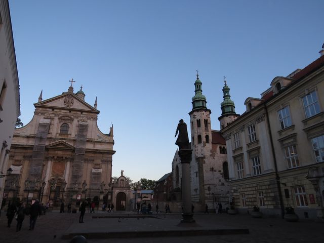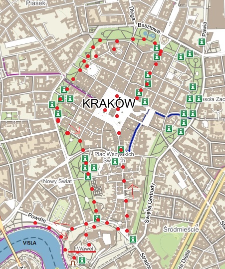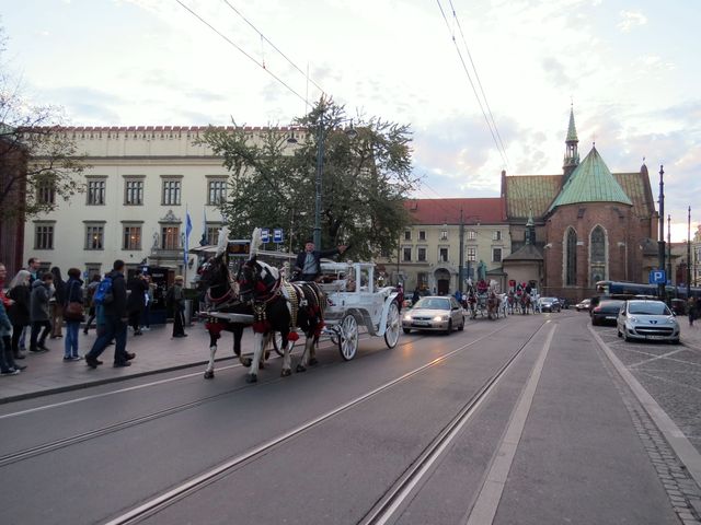 Od vedoucího zájezdu Milana Marka jsme dostali plánek Krakova a návrh podvečerní vycházky – z Wawelu není daleko do centra města, došli jsme tam Grodskou ulicí (Grodzka), nejstarší výstavnou ulicí Krakova, která byla součástí Královské cesty a staré obchodní stezky – během 700 metrů od hradu na Hlavní rynek jsme se věru nenudili – defilovaly před námi kostely všech slohů, historie opřádala svým kouzlem ty z nás, kteří jí snadno podléhají… 🙂