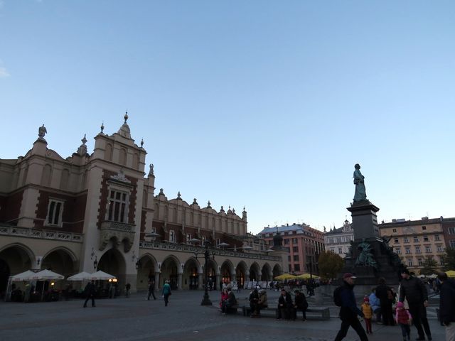Nejvyhledávanějším cílem na náměstí je pravděpodobně 108 metrů dlouhá patrová tržnice, zvaná Sukiennice, která vznikla ve 13. století a patří k symbolům Krakova. Dřív se tu prodávaly převážně látky, hlavně sukno (odtud název tržnice), nyní jsou dole v podloubí krámky s pelmel sortimentem, nahoře výstavní síň.