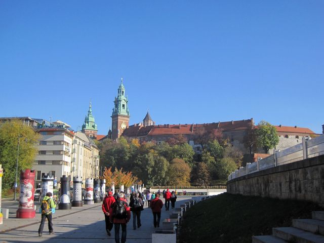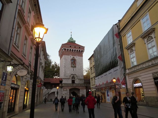 Den se nachýlil k večeru a chystal se odpočívat – před námi byla romantická vycházka po okruhu, kde bývalo městské opevnění. Krakov kdysi obepínal dvojitý prstenec hradeb – začaly se budovat na konci 13. století – většina obranných stavebních prvků byla v 19. století stržena a na jejich místě vznikly parky; zbyl jen úsek u Floriánské brány a Barbakánu.
