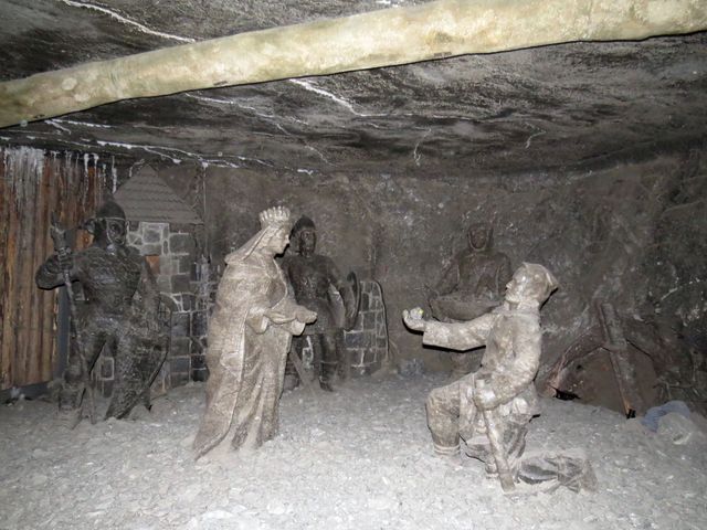 Zvláštní pozornost věnovali tvůrci soch patronce horníků ze solných dolů, královně jménem Kinga, která prý se zasloužila o rozvoj těžby soli a starala se (asi v rámci možností 🙂 ) o prospěch horníků.
