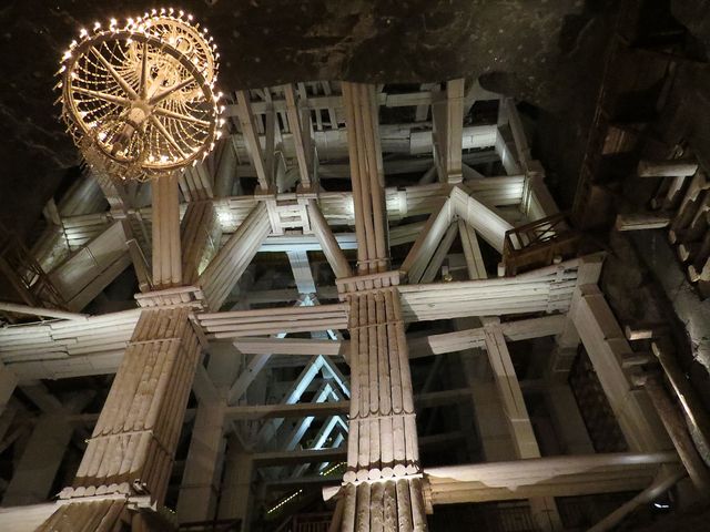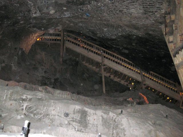Při vstupu do přijímacích prostor jsme dostali na krk chytrou krabičku, do ucha naslouchátko a náš polský průvodce velmi zřetelně a se zájmem o to, abychom dobře rozuměli, se ujal výkladu. Nejdříve jsme sestoupili po nekonečném točitém schodišti (380 schodů) do hloubky 64 metrů, kde začala prohlídka podzemí.