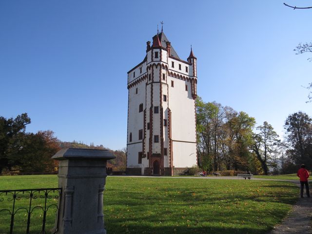 Nemohli jsme se bohužel vydat po turistické okružní cestě lesoparkem, jejíž značky nás lákavě vybízely k procházce okolní krajinou teple zářící v podzimním poledni…
