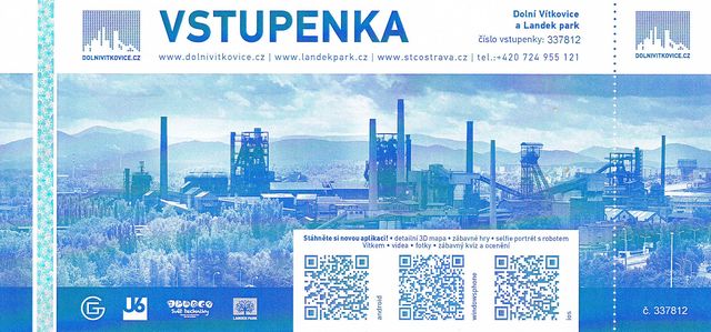 Zařadím proto sken vstupenky, kde pásmo Beskyd půvabně rámuje stavby Vítkovických železáren: