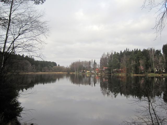 O okolí rounecké kapličky jsem psala už několikrát, jediná novinka v té lokalitě je nedávno zřízená zelená pěší trasa, která dovede turisty z Rantířova do Ježené na žlutě vyznačenou cestu, která začíná v Dolní Cerekvi a přes Čeřínek, Mirošov, Ježenou a Jiřín vede do Větrného Jeníkova. S potěšením jsme před kapličkou sv. Antonína obhlídli fešácký dřevěný směrovník a vydali se kolem Šancí do Ježené – cestou jsme ochutnávali nejen cukroví, ale i několik druhů slivovice, a tak cesta postupně dávala za pravdu svému názvu – počasí nebylo žádné, ani dobré ani špatné, neprojevovalo se. 🙂 Když jsme tedy špacírovali přes dvě vesnice a poté přecházeli silničku Vyskytná – Šimanov, dostali jsme se na úsek, kterým jsme šli letos v dubnu s PPP (Přátelé Přiměřeného Pohybu). Před hrází Trojanského rybníka