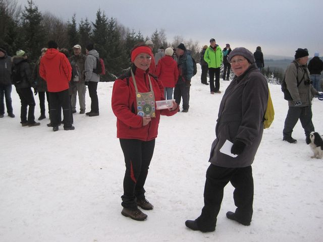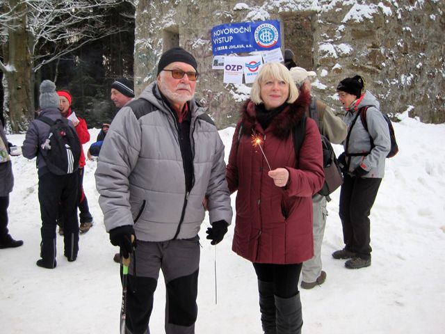 O odpoledním programu na Nový rok máme naprosto jasno – plni zcela nových předsevzetí se snažíme sekat dobrotu a přitom po očku (pošetile) pozorujeme, zdali nás Osud vidí – podle přísloví „Jak na Nový rok, tak po celý rok“ spěcháme vykonat čtyři dobré skutky: výstup na Šacberk (1) v krásných lesích u Jihlavy (2), milé setkání s přáteli (3) a příspěvek do sbírky na budování turistických stezek vhodných pro vozíčkáře (4)… Letos se nás tam, hádám, že ze stejných pohnutek 🙂 , sešlo 190 svátečně a vstřícně naladěných – v kasičce organizátoři z KČT Tesla Jihlava napočítali po skončení akce 4593 Kč.