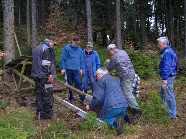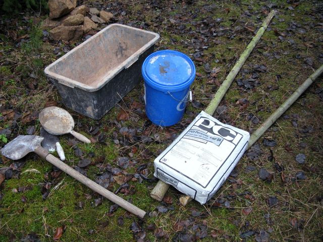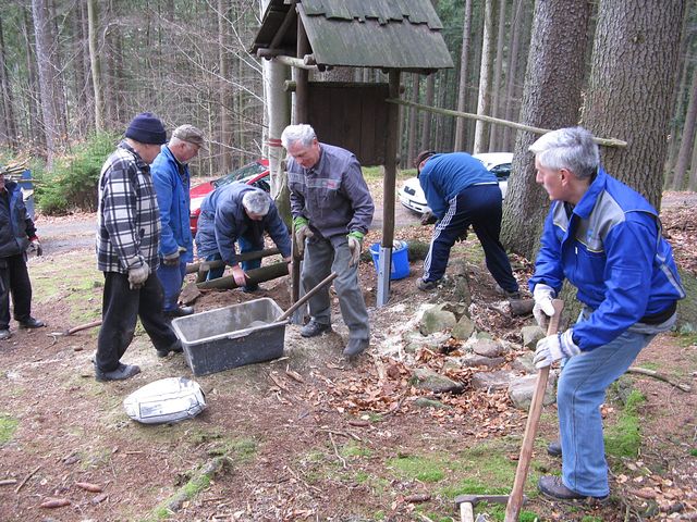 Stěžejním materiálem pro opravu byl beton a hlavním pracovním nástrojem kromě rukou ochotných turistů půdní vrták o průměru 15 cm.