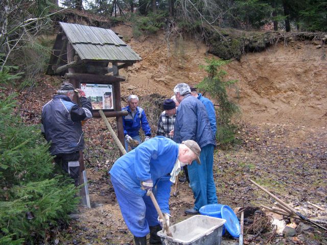 Je samozřejmé, že skupina realizátorů nemohla respektovat posloupnost zastávek podle scénáře naučné stezky, ale musela se řídit dopravními možnostmi – nejsnadněji přístupnou lokalitu „u pískovny“, tedy zastavení č. 2 a č. 3, mají za sebou, teď se přesunuli k přístřešku č. 4.