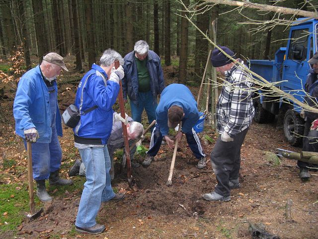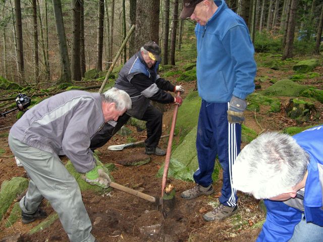 Půdní vrták byl sice skvělým pomocníkem, většinu jam bylo ale nutné kvůli kamenitému podloží vykopat ručně.