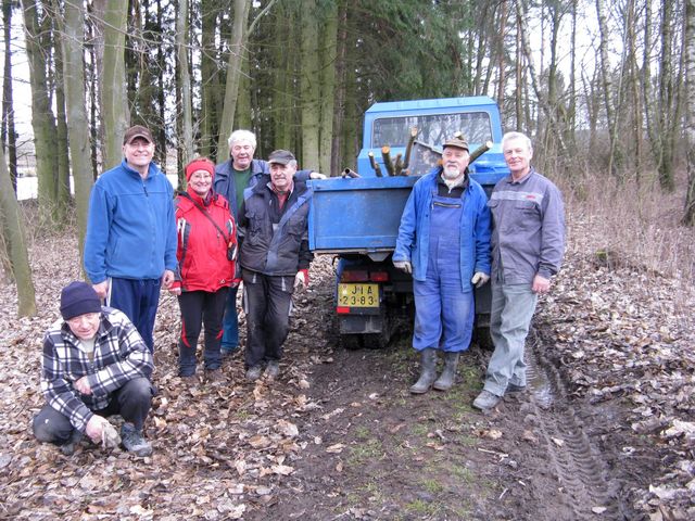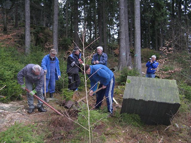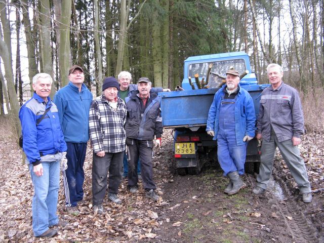 Na obrázku jsou zleva: Jiří Veselý, předseda KČT Čeřínek Jihlava a Vladimír Holec, člen KČT Tesla Jihlava, dále značkaři Václav Plánka (KČT Tesla) a Mirek Svatoš (KČT Čeřínek), Mirek Novák z Dolní Cerekve, Ladislav Březina z KČT Tesla Jihlava a zcela vpravo je značkař František Janeček z KČT Tesla Jihlava.