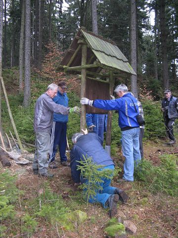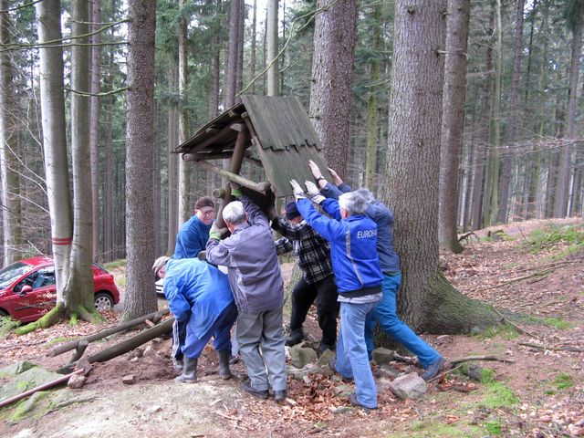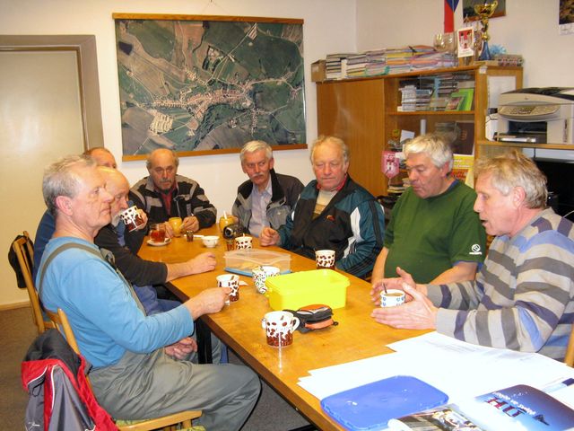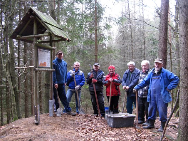 Krátká návštěva u starosty Dolní Cerekve Zdeňka Jirsy, který s potěšením vyslechl hlášení o zdárném dokončení plánovaných prací a ocenil příkladnou součinnost turistů, přinesla příslib budoucího zkvalitnění zastávek na naučné stezce.