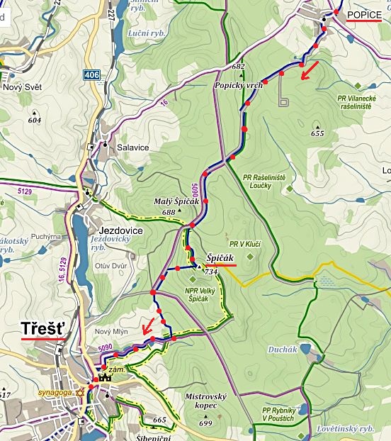 (Značení Suchá – Špičák 2008, Dolní Cerekev – Třešť 2011, Z Jezdovic přes Špičák do Třeště 2011)