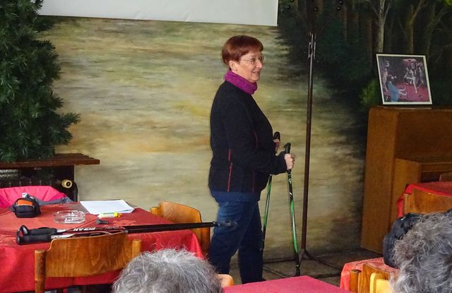 Odbor KČT Čeřínek Jihlava zajistil pro zájemce dnes velmi populární „chůze s holemi“ lektorku Mílu Bradovou z KČT Tesla Jihlava, která předstoupila před zvědavé a natěšené publikum v sále restaurace Starka poblíž nového sportovního areálu Český mlýn nedávno dokončeného na obou březích řeky Jihlavy.
