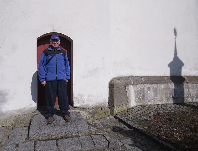 Jarda nás upozornil na další zajímavost u kostela – pranýř, z něhož je ale zachován jen schodek s výklenky pro nohy provinilce, další kámen hanby prý býval na rohu staré radnice.