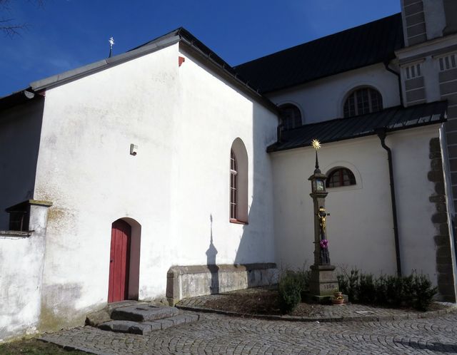 Poblíž nelze přehlédnout kamenná boží muka z roku 1860 – cítíme, jak nás mocné siločáry tohoto historického prostoru neodbytně vtahují do svého středu…