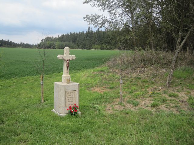Na trase mezi Kozlovem a Velkým Beranovem jsme si na konci lesa všimli novotou zářícího křížku s textem: Měj radost z toho, co ti bylo dáno a nechtěj všechno. L.P. 2015