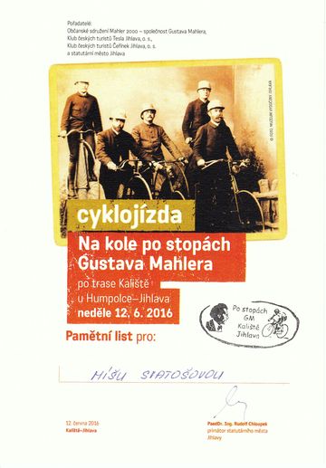 Neděli 12. června 2016 vybrali organizátoři 15. ročníku hudebního festivalu Mahler Jihlava – Hudba tisíců pro pořádání tradiční cyklojízdy se startem před rodným domem Gustava Mahlera v Kalištích u Humpolce.