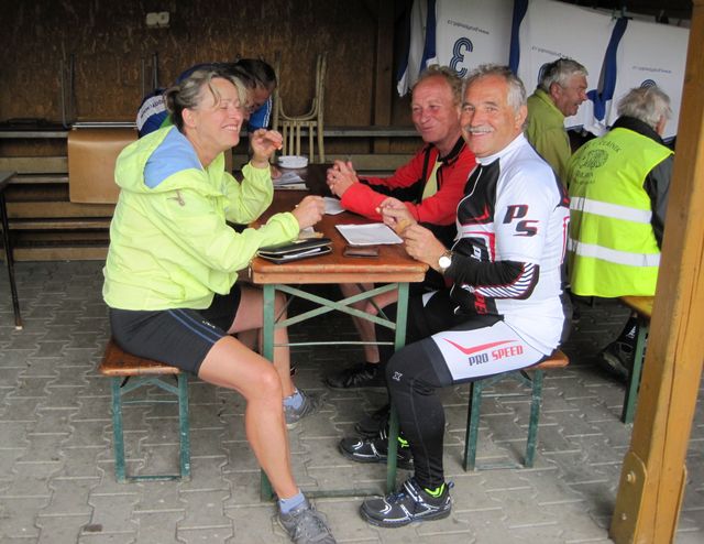 Poté co shromáždění cykloturisté obdrželi od Ivy Svobodové z Klubu českých turistů Tesla Jihlava startovní listiny s mapkami tras, vyslechli organizační pokyny a objeli čestné kolečko po malebné kališťské návsi, vydali se směrem k Jihlavě.