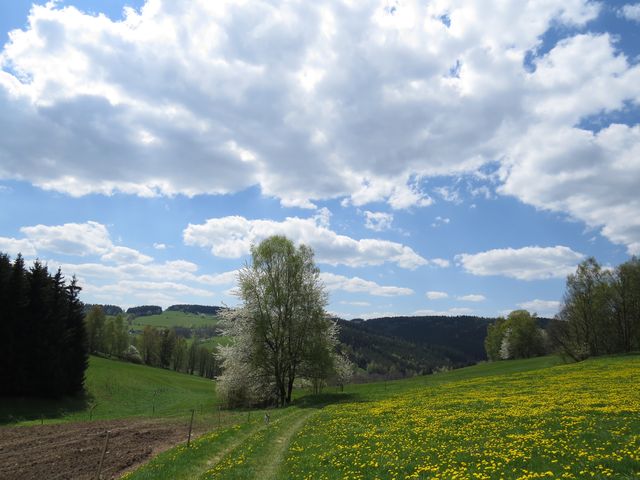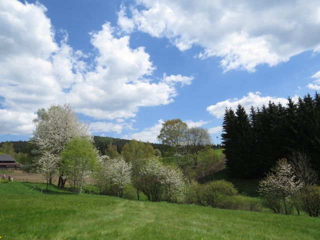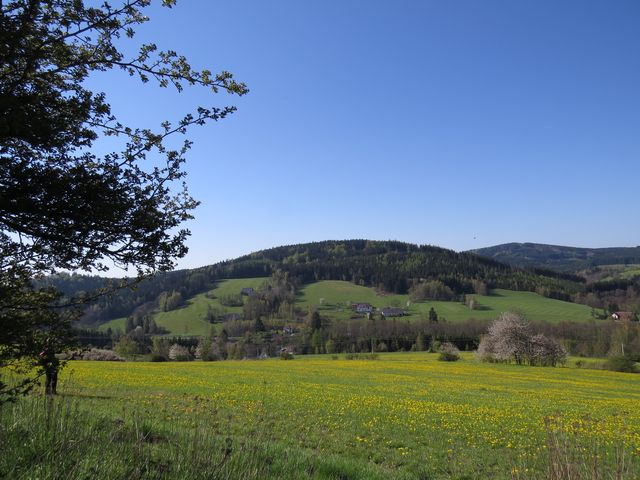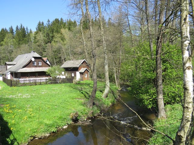 Sešli jsme hluboko do údolí Fryšávky, kde leží obec Líšná, která má také dvě části – Horní a Dolní – obě pohledné, upravené a jarně rozkvetlé.
