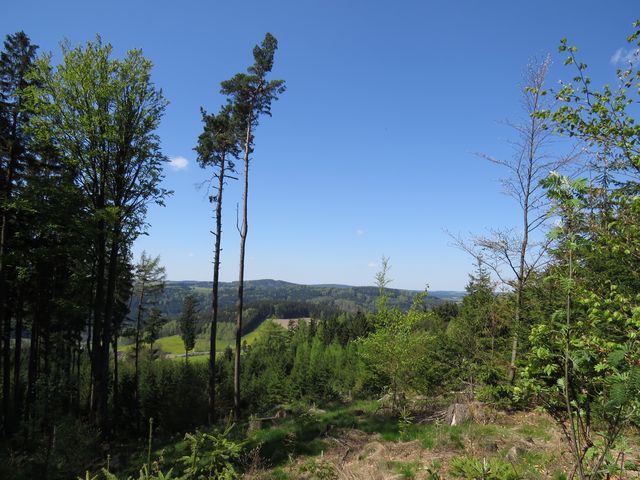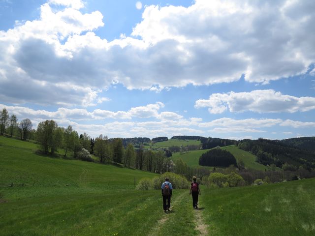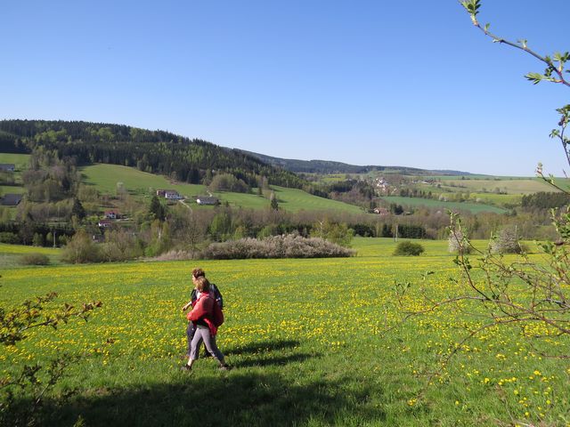 Trochu jsme si namáhali hlavy se správným určením dalšího postupu ze Štarkova, protože tamní terén je dost nepřehledný, ale nakonec nás modrá značka správně zavedla na Nové Jimramovské Paseky, odkud byl boží pohled – a před námi poslední třetina nádherné, ale nikoliv lehké vycházkové trasy…