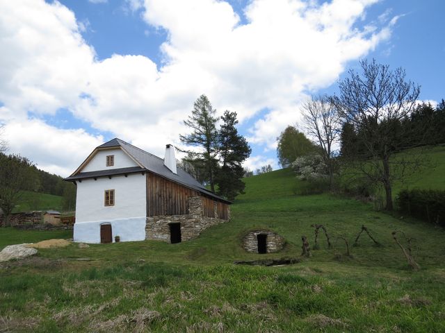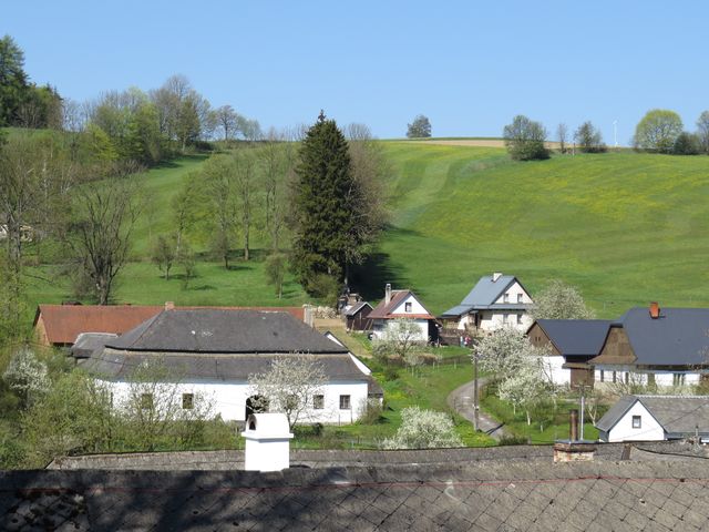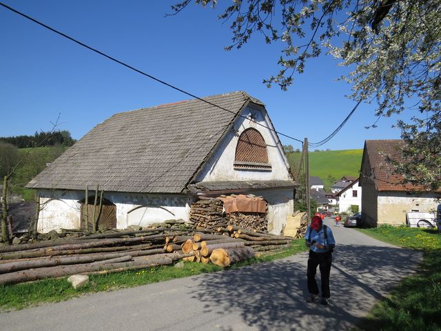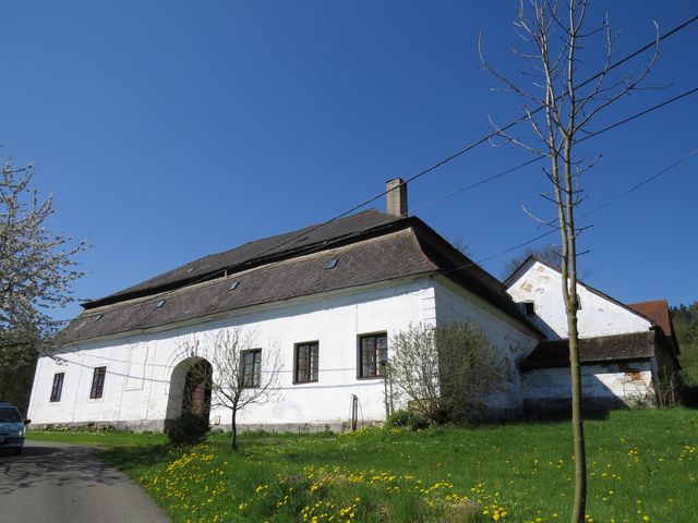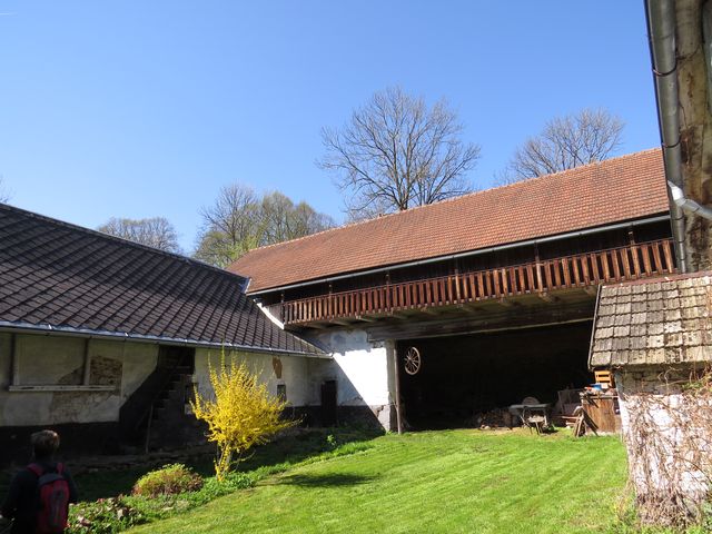 Stoupali jsme po modře značené cestě úbočím kopce a rychta jako ústřední bod obce se nedala přehlédnout: