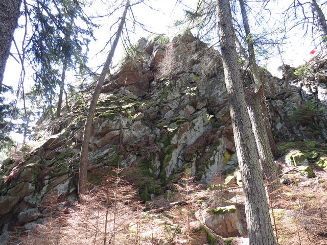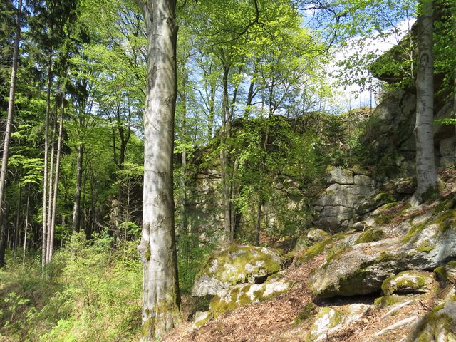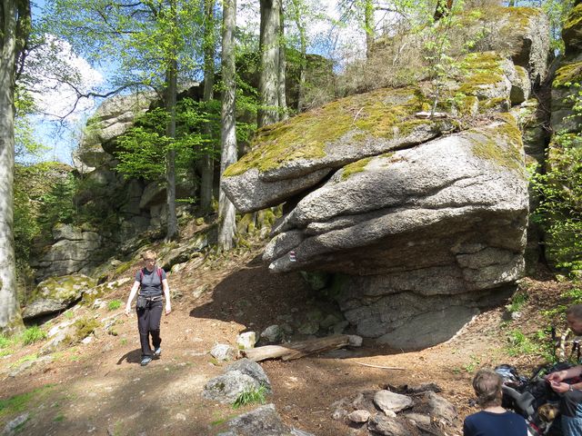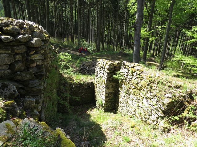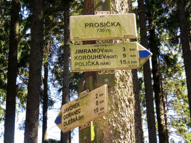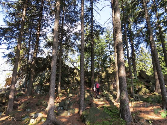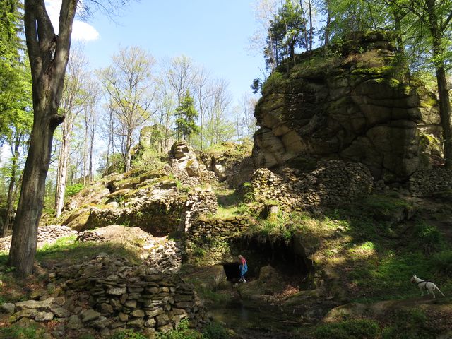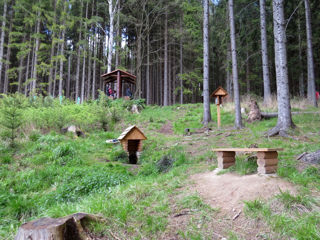 Neznačenou lesní cestou jsme sestoupili z rulového hřbetu tak, že jsme se správně napojili na červeně značenou trasu a po ní zanedlouho došli k Lesní studánce.