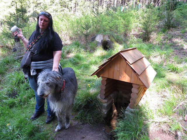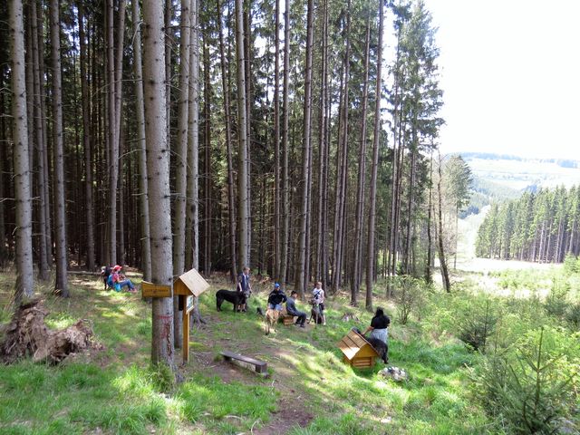 Areál, o který se stará ZŠ Jimramov, se nachází v katastru obce Nový Jimramov, poblíž osady Na Louži – nejen, že jsme si užili výhledu do údolí, navíc jsme byli účastni přehlídce psů – kdesi poblíž měli sraz majitelé irských vlkodavů, ale zahlédli jsme i pár loveckých psů a naháčů, kteří byli právě na vycházce. Podívaná to byla neotřelá a zajímavá!