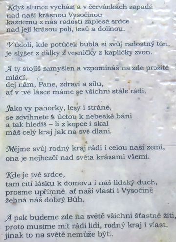 Myslím, že za pozornost stojí i kaplička u osady Na Louži a text, který se kolemjdoucím nabízí k přečtení.