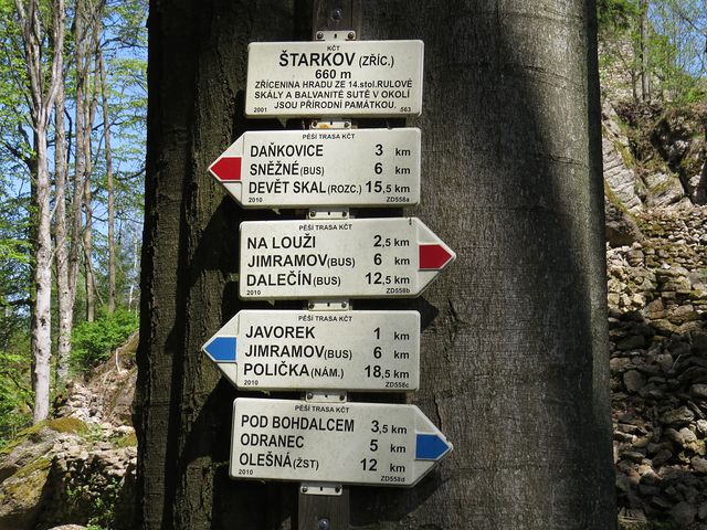 Okruh z Daňkovic přes skály Prosička a zříceninu hradu Štarkov zpět do Daňkovic.