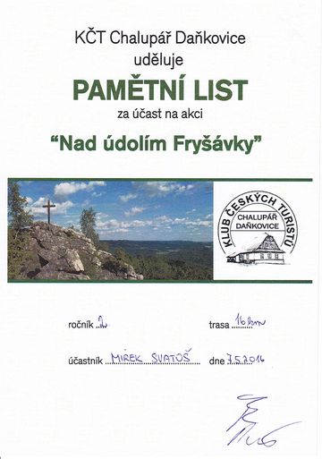 Měli jsme dobrý pocit, když se na této akci, na trasách pečlivě a se znalostí místního prostředí vybraných pořadateli, sešli zástupci všech tří jihlavských turistických odborů. Celkem se pochodu Nad údolím Fryšávky zúčastnilo 45 lidí – akce si ještě hledá svoje příznivce a my, kteří jsme 7. května 2016 na daňkovickém okruhu byli, ji můžeme všem vřele doporučit. 🙂