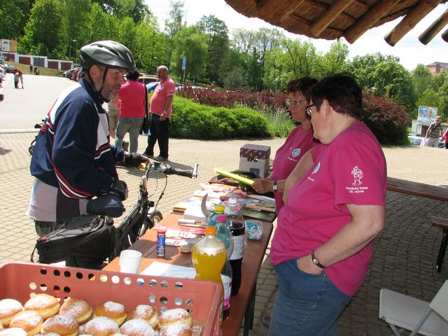 V cíli pořadatelé vlídně a s pochopením vyslechli „historky z cest“ 🙂 , zapojili nás do losování tomboly, podali nápoje, třeskutě vonící koblihy