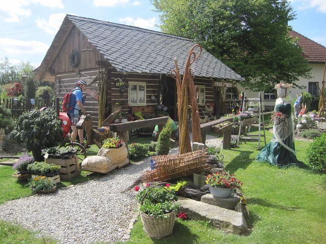 Po svačince jsme se vrátili na rozcestí u Vysoké a vyšlapali kopec do Popic – široký-daleký výhled jsme zanedlouho opustili a všechnu pozornost věnovali malému barevnému prostranství na začátku obce, kde je zahradnictví.