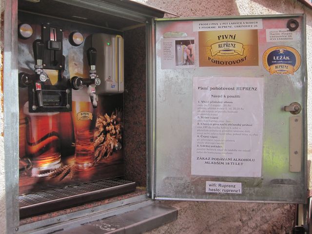 – projeli jsme Vílanec, vystoupali do Cerekvičky, sjeli k Sokolíčku, a když jsme dorazili do Uhřínovic, měli jsme asi polovinu cesty za sebou. Tady se všichni zbláznili radostí před pivním automatem, který čepuje po vhození příslušného finančního obnosu pivo značky Ruprenz, které se v Uhřínovicích v malém pivovárku vaří.
