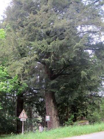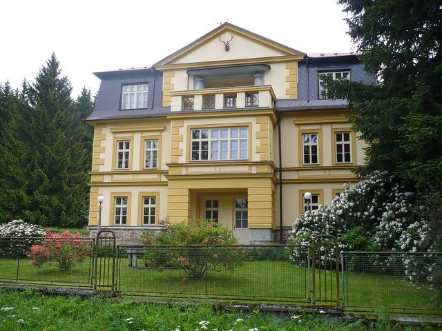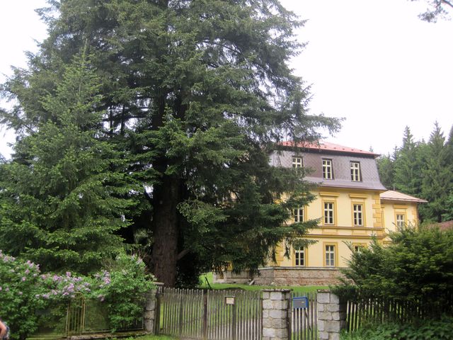 Prý se stavělo v místech, kde od 14. století bývala tvrz. Šest nádherných douglasek tisolistých soutěží s vilou o pozornost příchozích – stromy působí nadpozemsky vznešeně.
