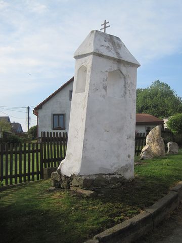 Boží muka mají lichoběžníkový půdorys a asymetrickou zděnou střechu s kovovým křížkem na vrcholku – ve všech čtyřech stranách jsou výklenky – z dětství si pamatuji, že v nich stávaly sošky, svaté obrázky či malé dřevěné křížky.