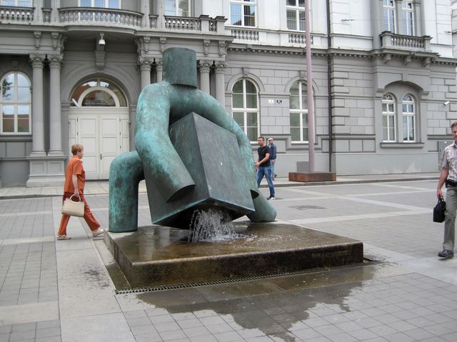 Muž namáhavě zvedá těžký kvádr a zároveň se snaží za pomoci proudu vody udržet rovnováhu – měděná socha Spravedlnosti, stejně jako nedaleká bronzová Odvaha jsou (jak nové sochy bývají vždycky) terčem kritiky a posměšků některých Brňanů…