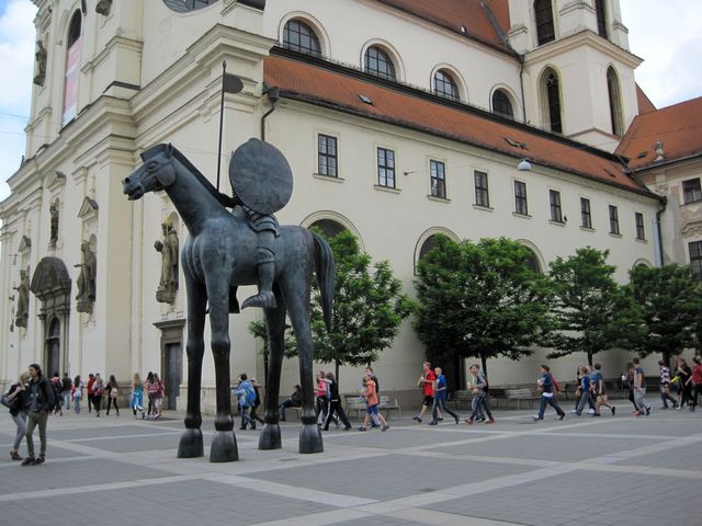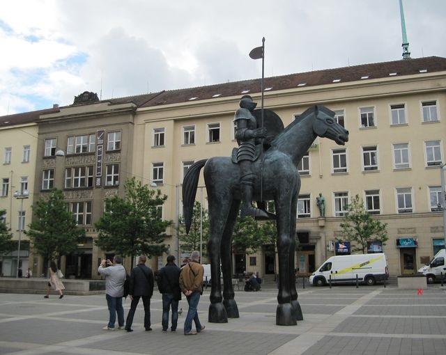 Na samý začátek června byl v centru Brna stanoven sraz maturantek, ani nechci napsat z kterého roku… Dorazila jsem do města mého mládí krátce před stanovenou hodinou a měla trochu času k prohlídce novot z poslední doby – zamířila jsem na blízké Moravské náměstí, které před několika lety prošlo rekonstrukcí, abych na vlastní oči viděla sochy, které je zdobí. Zvědavá jsem byla zvláště na dílo Jaroslava Róny nazvané Odvaha, o kterém se před časem proslýchalo, že bude v Jihlavě – naši zastupitelé však k rytířské Odvaze umístěné ve středověkém centru města neměli odvahu ani moudrost (a prý ani peníze)…