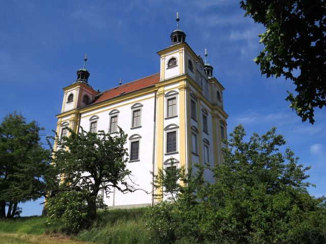 První zastavení v krásném slunečném dni nás zavedlo na kopec nad Moravským Krumlovem k poutní kapli sv. Floriána vysvěcené roku 1697.
