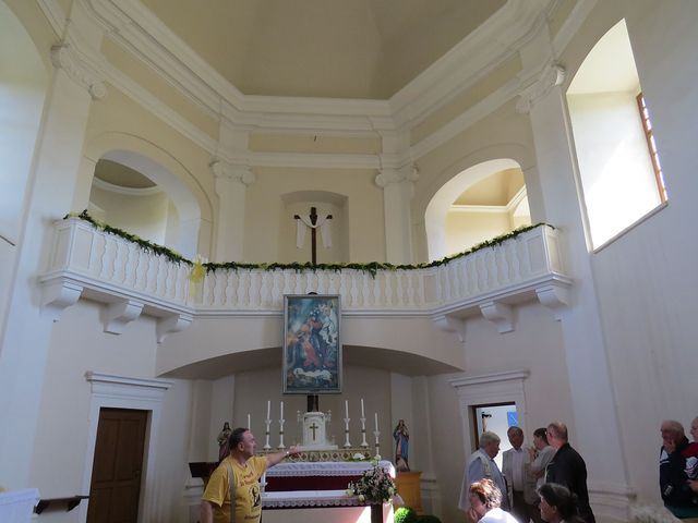 Měli jsme možnost podívat se do interiéru – krumlovský farář kapli po předchozí domluvě otevřel – akademický malíř Vladimír Netolička, účastník výletu, nám podal zasvěcený výklad – jakoby plynule pokračoval v kapitole z dějin umění, které během roku na VŠP v Jihlavě přednáší…