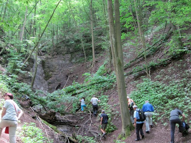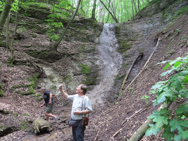 Jen kousek za vesnicí je odbočka z modré značky – stezka dovede zvědavé poutníky k patě vodopádu, který není ani zdaleka mohutný, ale se svými dvěma stupni a celkem 15 metry výšky kaňonu je neopominutelný – i když jeho vody mizí v útrobách země…