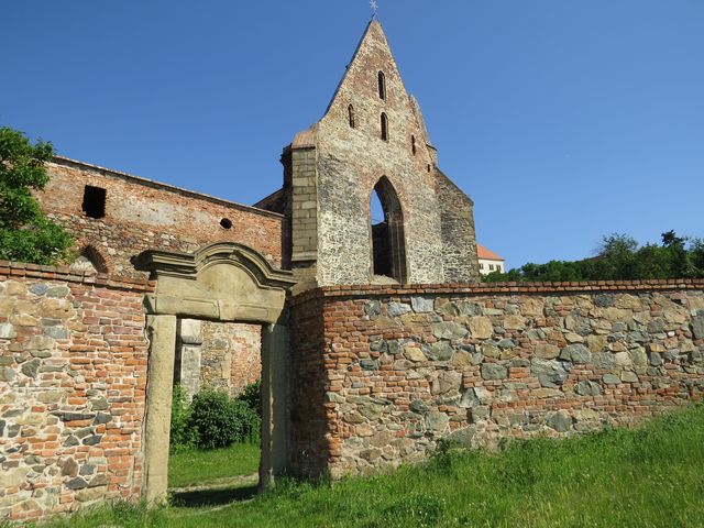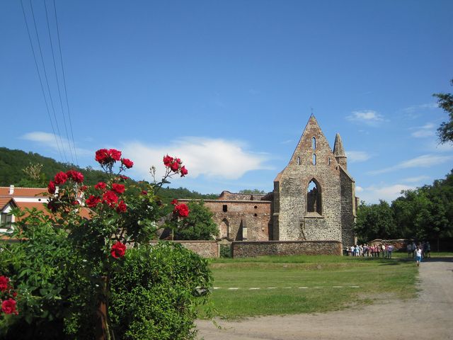 Autobus nás dovezl do nedalekých Dolních Kounic, kde jsme si v doprovodu průvodkyně prohlédli zříceniny kláštera Rosa coeli. Klášter vybudovaný v roce 1183 byl zasvěcen Panně Marii, která bývá též nazývána Růže nebeská (Rosa coeli) – odtud název konventu.