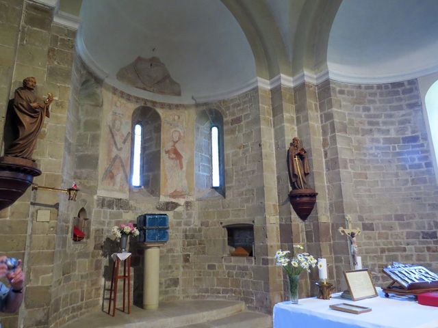Ve čtvercové lodi (o hraně přes 5 metrů), z níž vystupuje trojice apsid, upoutají příchozí zbytky gotických maleb a renesanční náhrobky.