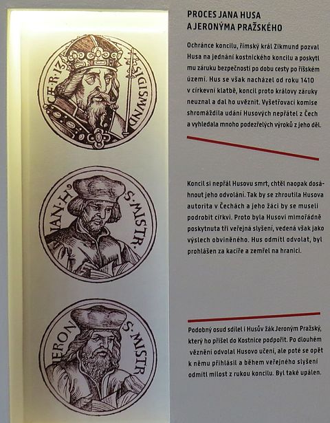 Je samozřejmé, že jsme navštívili muzeum, kde je přehledně prezentován ucelený průřez životem Jana Husa (*asi 1369) a jeho snahy o reformaci církve, a také činnost následovníků, hlavně Jeronýma Pražského (*asi 1378), který stojí trochu ve stínu velkého kazatele a „buřiče“. V časech papežského dvojvládí a posléze dokonce trojvládí nahlas pojmenovávali oba vzdělaní a učení pánové zlořády v církvi a navrhovali změny. Jeroným Pražský byl narozdíl od kněze a populárního kazatele Mistra Jana církevní laik, především filozof a cestovatel, jeden z nejvzdělanějších lidí své doby.