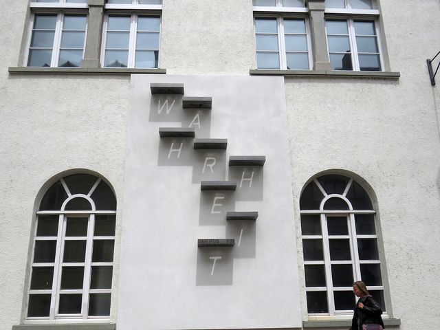 svítí-li slunce, tabulky vrhají stín a v něm se objeví nápis Wahrheit, což v překladu znamená Pravda