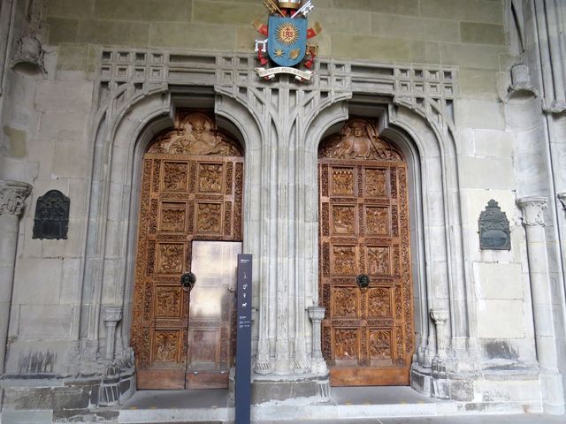 dveřmi v dubových vratech z roku 1460 se vstupuje do katedrály Matky Boží